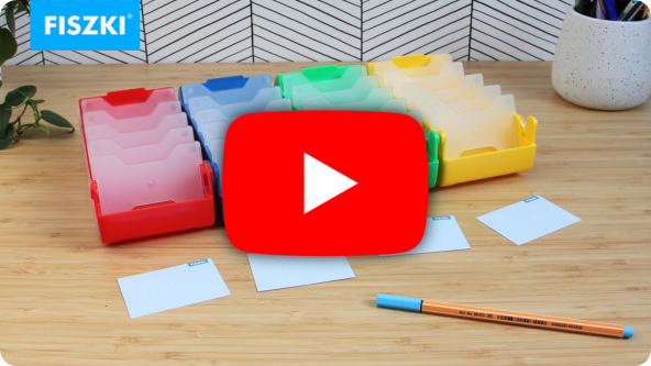 Prezentowany produkt umożliwia naukę z fiszek metodą pięciu przegródek opracowaną przez Sebastiana Leitnera. Polecamy osobom, które korzystają z gotowych fiszek, jak i tym, które tworzą fiszki samodzielnie i kompletują niezbędne akcesoria.